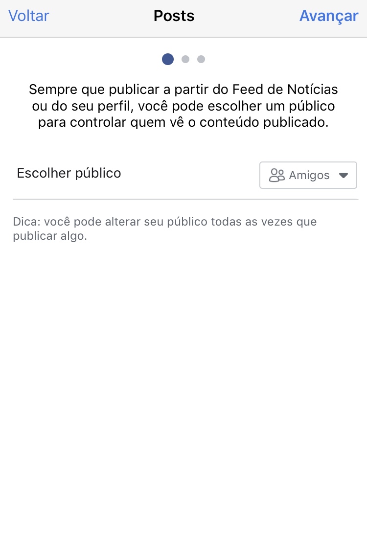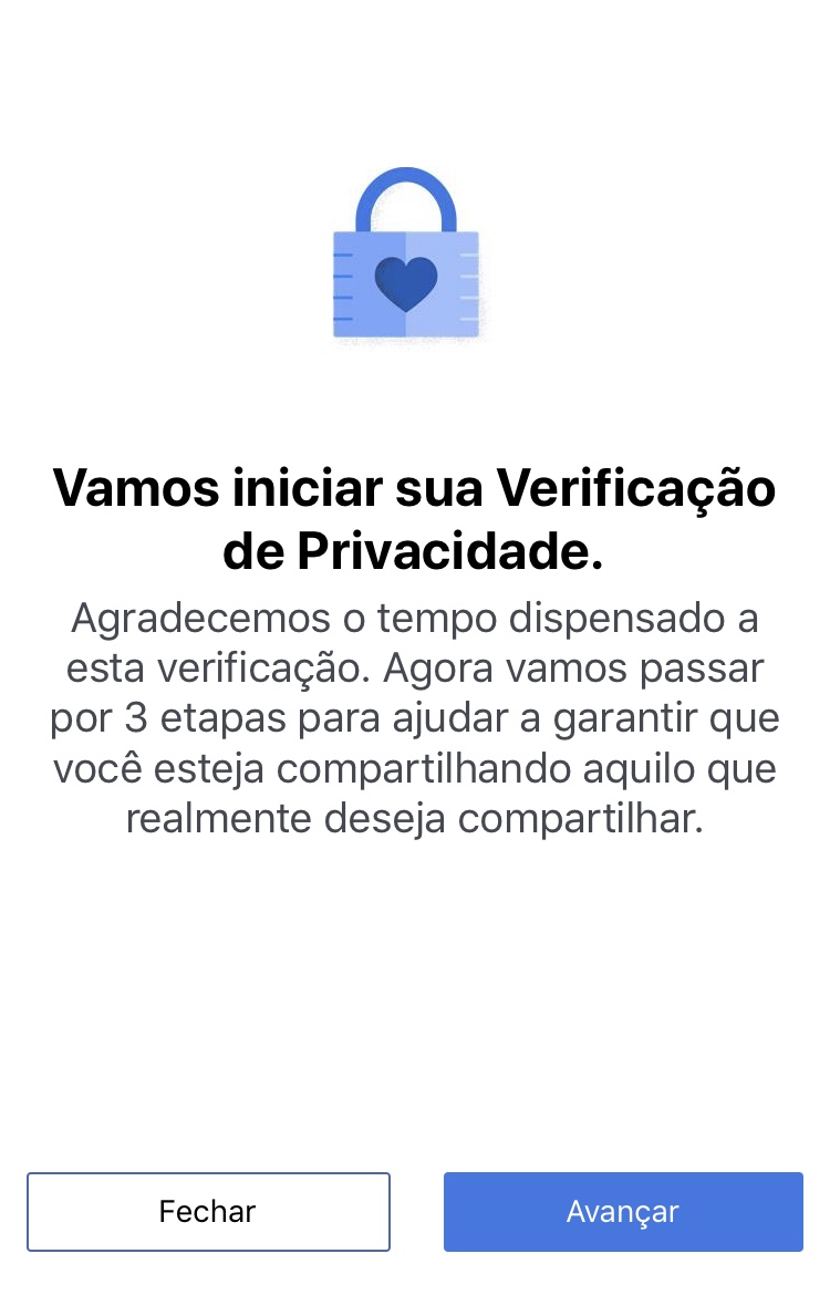 É importante que as pessoas periodicamente revisem suas opções de privacidade para garantir que ainda sejam as mais adequadas. Assim, para marcar o Dia Internacional da Proteção de Dados, estamos mostrando às pessoas um lembrete no Feed de Notícias convidando-as a fazer a Verificação de Privacidade. Vamos enviar o lembrete a usuários ao redor do mundo nas próximas duas semanas para ajudá-los a analisar: