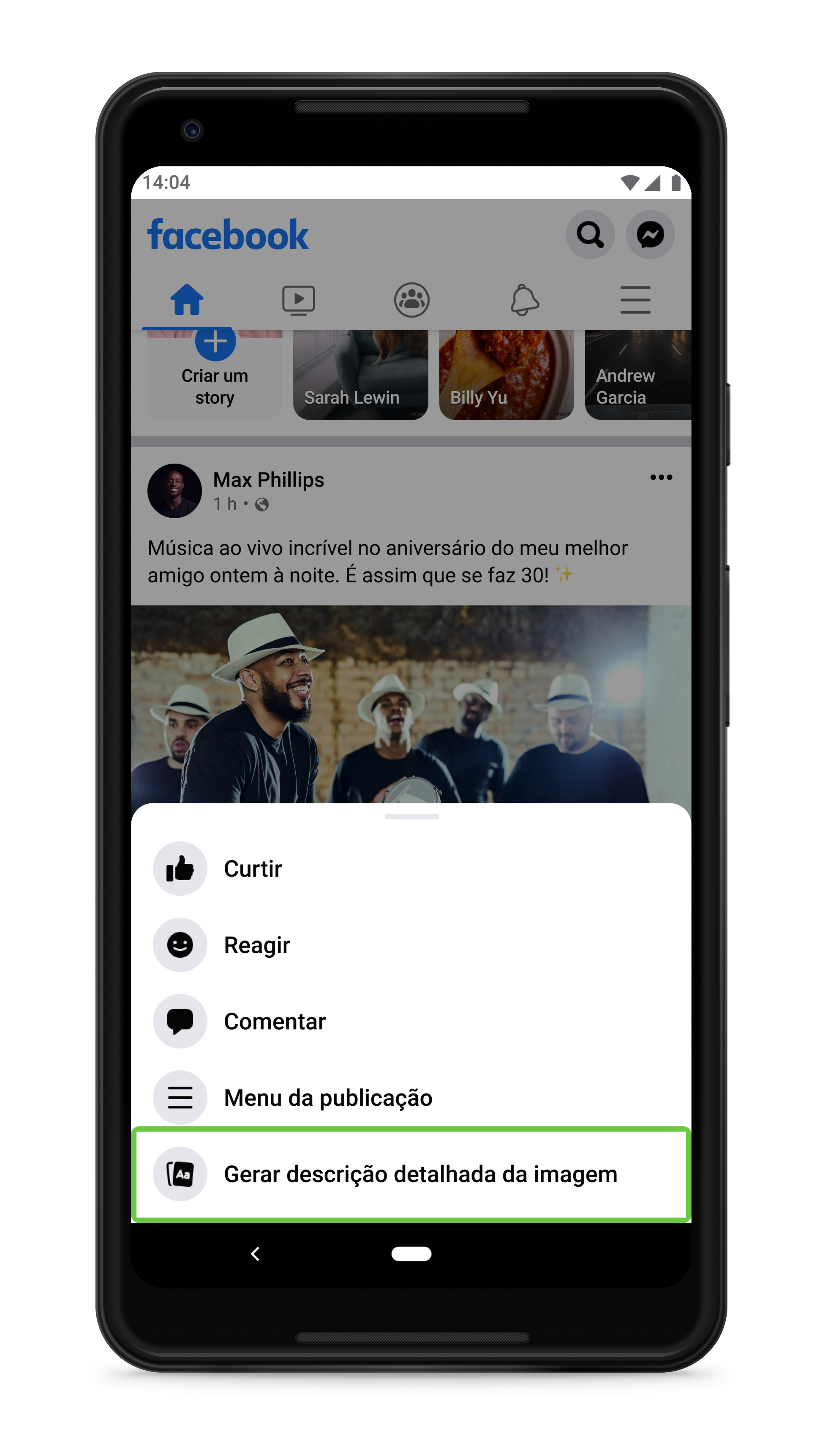 Quando as pessoas navegam por seu Feed de Notícias no Facebook, elas encontram diversos tipos de conteúdo — artigos, comentários de amigos, convites para eventos e, claro, fotos. A maioria das pessoas consegue ver instantaneamente o que está nessas imagens, seja o registro de seu novo neto, um barco em um rio ou a imagem granulada de uma banda no palco. Mas muitos usuários com deficiência visual também podem experienciar essas imagens, desde que sejam marcadas devidamente com texto alternativo (ou “texto alt.”). Um leitor de tela pode descrever o conteúdo dessas imagens usando uma voz sintética e permitir que as pessoas com deficiência visual entendam as imagens em seu Feed do Facebook.