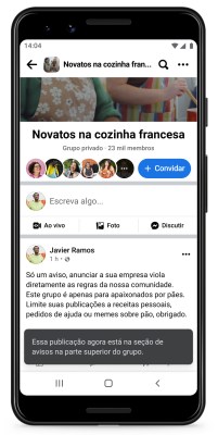 Agora, os administradores podem fazer uma apelação de violações referentes a conteúdo publicado ou aprovado por eles ou por outros administradores, bem como conteúdo de membros. Essas apelações serão analisadas pelo Facebook para garantir que a decisão certa seja tomada.