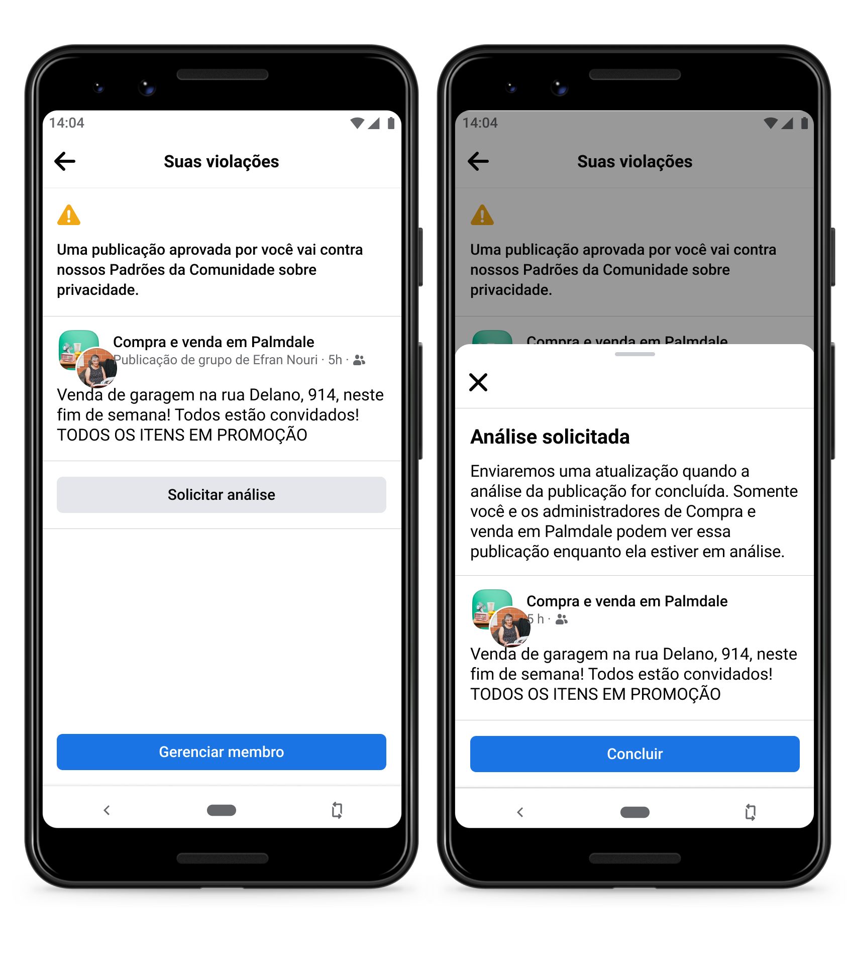 Agora, os administradores podem fazer uma apelação de violações referentes a conteúdo publicado ou aprovado por eles ou por outros administradores, bem como conteúdo de membros. Essas apelações serão analisadas pelo Facebook para garantir que a decisão certa seja tomada.