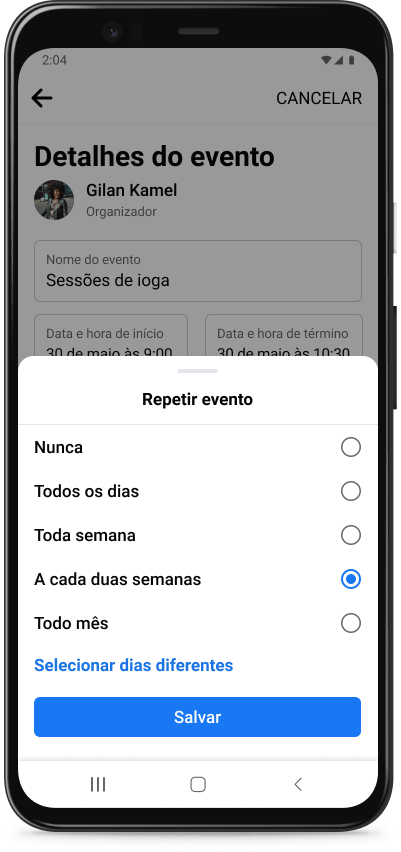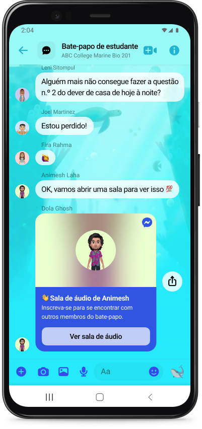 Quando as pessoas quiserem interagir em tempo real, poderão, em breve, usar os Bate-papos da Comunidade, no Facebook e no Messenger, além de criar eventos recorrentes quando quiserem se reunir, seja virtualmente ou pessoalmente.