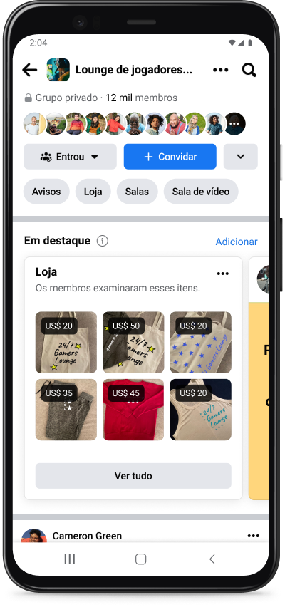 - Vender mercadorias criadas pelos administradores por meio de uma loja em seu Grupo, permitindo que os membros mostrem seu apoio e aprofundem seu senso de comunidade.