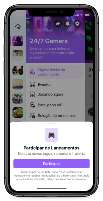 Estamos melhorando a organização de cada grupo, para que você possa ir direto ao que há de novo. Dentro do seu grupo, você verá um novo menu que inclui eventos e uma variedade de canais para facilitar a conexão com outras pessoas sobre os tópicos de seu interesse. Assim, quando estiver em seu grupo de culinária, você poderá se manter atualizado sobre os próximos eventos e participar de conversas mais facilmente.