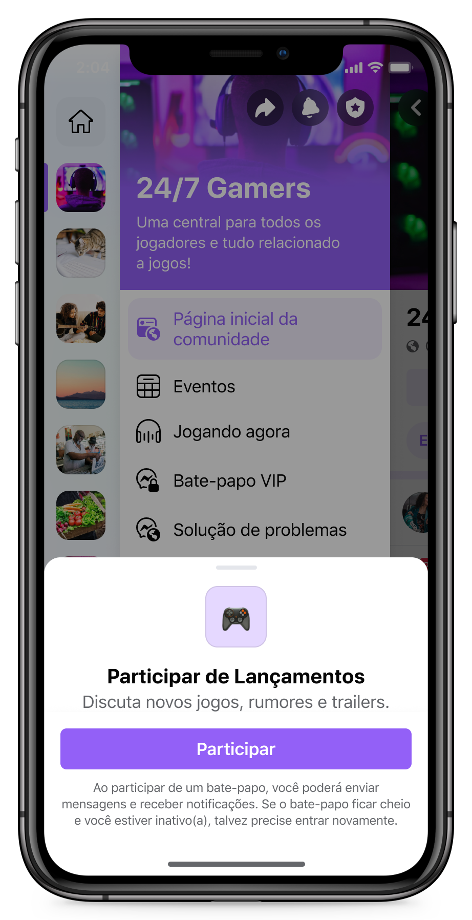 - Também estamos testando “Canais”, que são espaços focados para as pessoas se conectarem em ambientes menores e mais casuais dentro de suas comunidades.