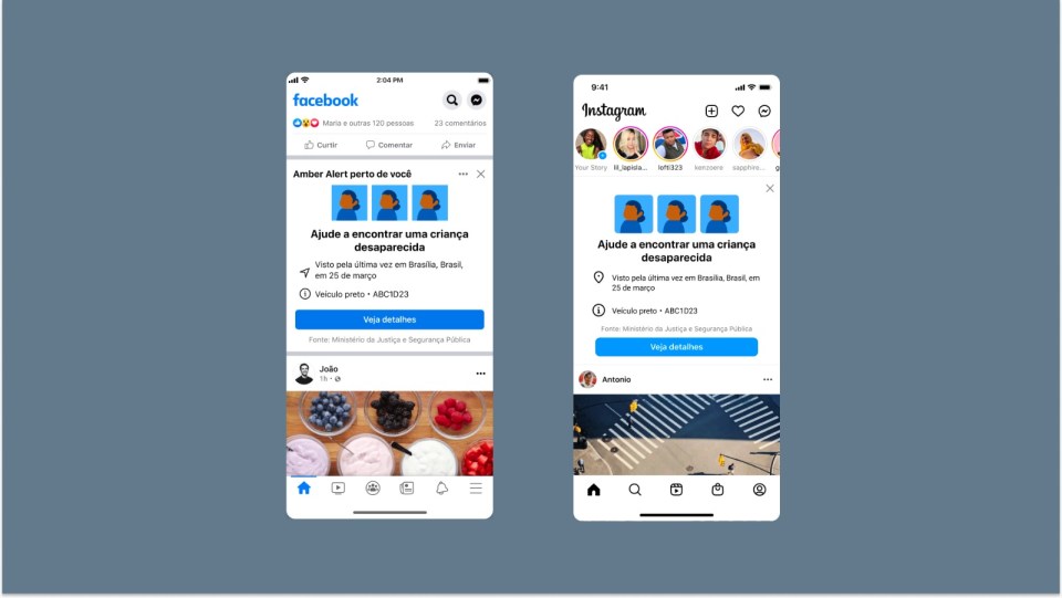 Uma parceria entre Ministério da Justiça e Segurança Pública e Meta fará com que pessoas que usam o Facebook e o Instagram possam ter papel-chave na localização de crianças desaparecidas no Brasil. Os Amber Alerts enviam avisos para os usuários das plataformas com informações como fotos e descrição das roupas com que crianças foram vistas pela última vez para ajudar o público a encontrá-las.