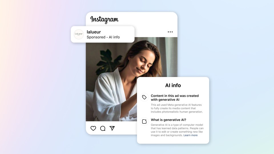 Na Meta, continuamos priorizando a transparência e a responsabilidade em nossas diretrizes para anunciantes. Desde o ano passado, começamos a rotular os anúncios criados ou significativamente editados com o uso dos nossos recursos de criativo de IA generativa, que estão disponíveis nas ferramentas de marketing para anunciantes. Vou explicar a seguir como desenvolvemos nossa abordagem e como o sistema funciona.