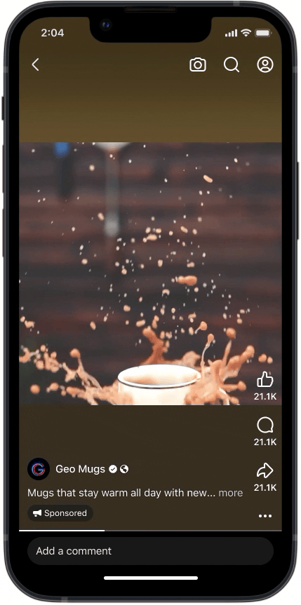 Antes, nos Anúncios de Parceria, o nome do anunciante e do criador apareciam no cabeçalho do anúncio. Agora, anunciantes poderão destacar apenas um parceiro no cabeçalho dos anúncios no Facebook e no Instagram, criando mais espaço para que a voz e identidade do criador se destaquem.