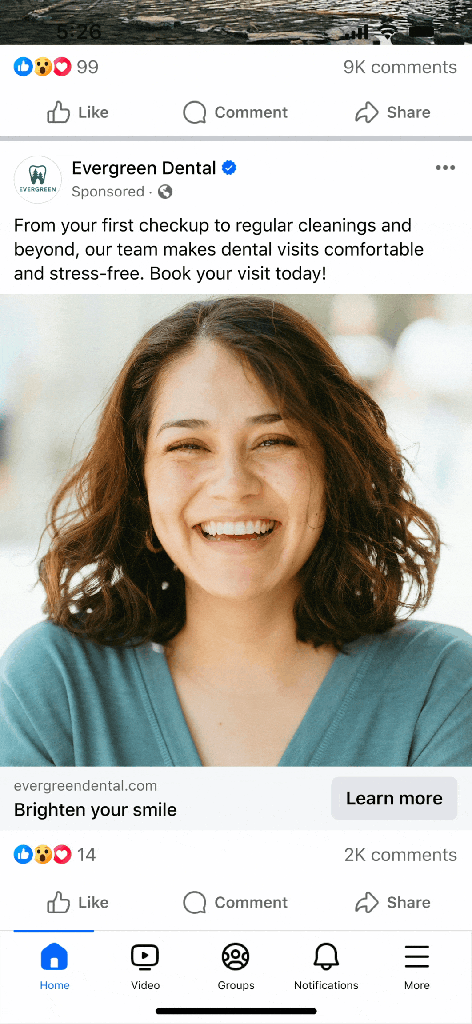 - Anunciado anteriormente em Cannes, agora estamos trazendo essa melhoria visual com IA generativa para o botão de call-to-action dos anúncios para todos os anunciantes globalmente nos Stories no Facebook, além de testes para os Stories no Instagram e Reels no Facebook.