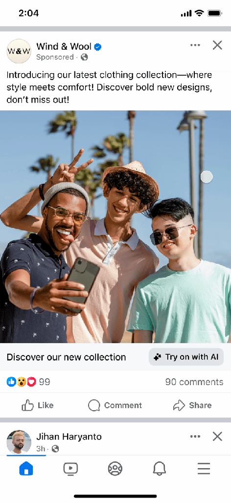 Anunciantes e agências continuam aproveitando o criativo Advantage+ com IA generativa, sendo quase 2 milhões de anunciantes utilizando apenas nossa ferramenta de geração de vídeo. Hoje, estamos expandindo nossas capacidades criativas com IA generativa e lançando novos recursos para oferecer a anunciantes e agências resultados mais personalizados, que se alinhem aos consumidores que desejam alcançar.