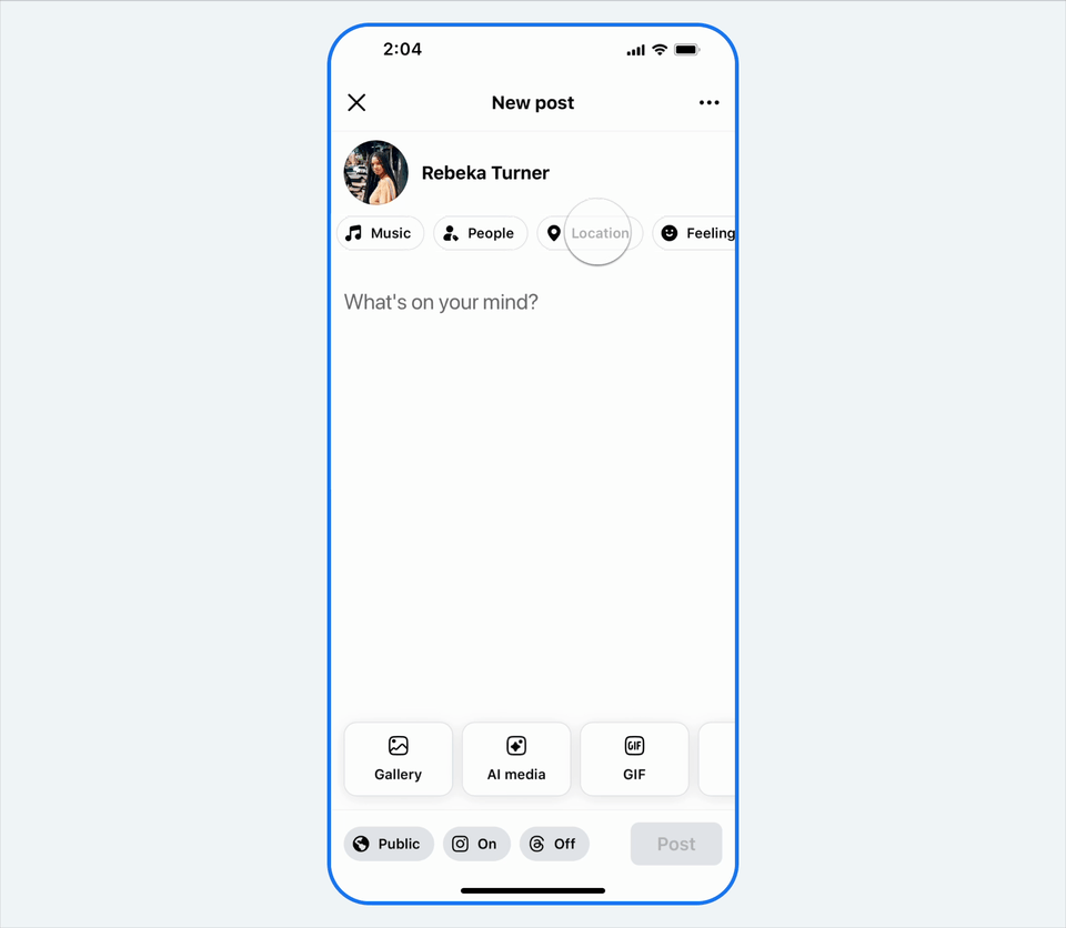 Redesenhamos a forma de criar Stories e publicações no Feed para torná-la mais intuitiva, colocando as ferramentas mais populares, como adicionar música e marcar amigos, em destaque. As novas interfaces facilitam a criação de conteúdo de qualidade com menos distrações, e ferramentas avançadas, como fundos coloridos para textos, continuam a apenas um toque de distância. As configurações de público e compartilhamento cruzado estão visíveis no compositor, facilitando o ajuste.