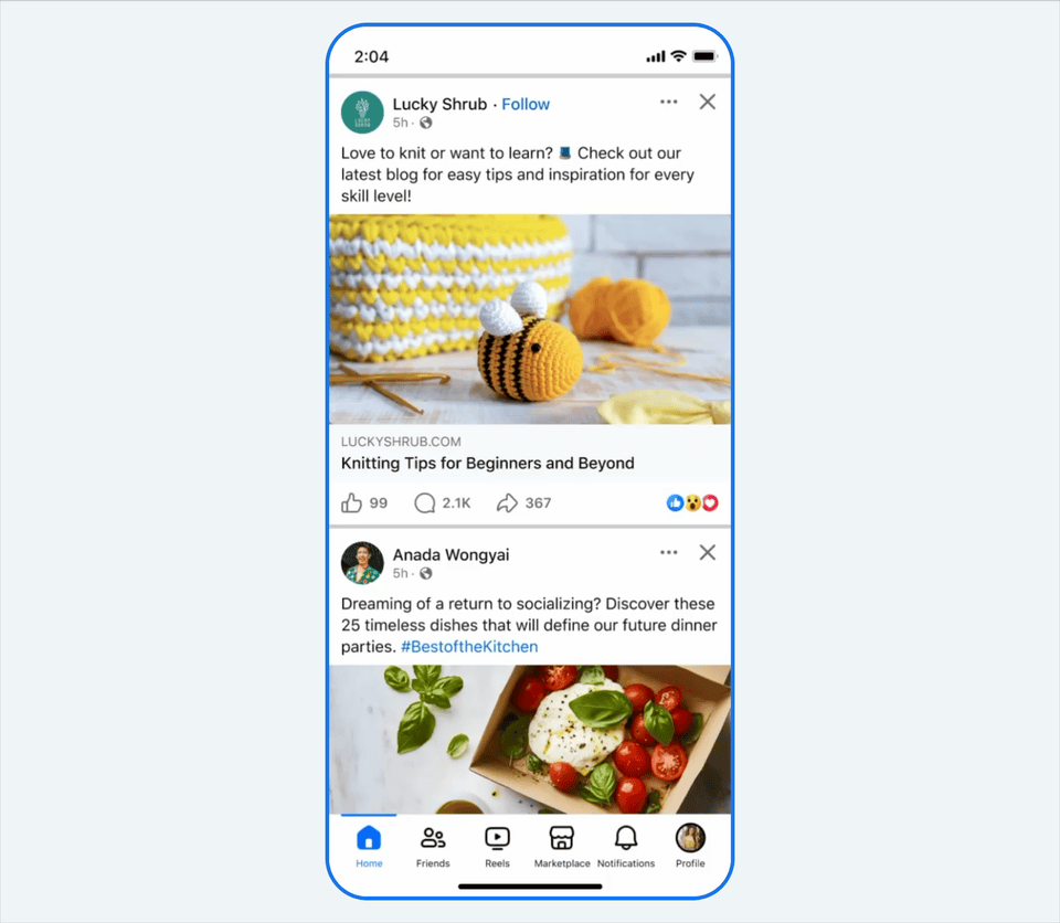 Em breve, os recursos mais usados do Facebook – como Reels, Amigos, Marketplace e Perfil – estarão em destaque na barra de abas, facilitando o acesso. Você também verá um menu redesenhado e notificações mais limpas para acompanhar as novidades do Facebook.