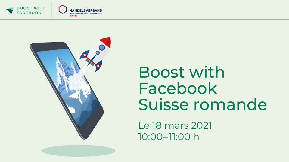 Boost with Facebook est une initiative de Facebook visant à former gratuitement des millions de personnes et d’entreprises de l’Union Européenne aux compétences numériques. Le 18 mars 2021, Boost with Facebook arrivera pour la première fois en Suisse romande – du moins virtuellement – et visera à présenter aux dirigeants locaux de petites et moyennes entreprises les fonctionnalités et outils les plus importants sur l’ensemble des plateformes de Facebook.