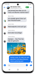 Gemeinschaften leben durch regen Austausch und Gespräche. Facebook verbessert deshalb auch die Chat-Bedingungen und ermöglicht den Gruppenmitgliedern, untereinander Echtzeit-Diskussionen zu führen. Neue Post-Formate bieten ihnen darüber hinaus mehr visuelle Ausdrucksmöglichkeiten: