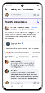 Darüber hinaus testen wir neue Wege, wie Menschen Gespräche in öffentlichen Gruppen sowohl auf als auch außerhalb von Facebook führen können. Neue Tools helfen dabei, Gruppen zu finden, an denen User interessiert sind. Wer durch den News Feed scrollt und auf ein Thema stößt, das er gerne weiterverfolgen möchte, kann jetzt direkten Zugang zu Gesprächen finden, die aktuell auf Facebook dazu stattfinden. Auf diese Weise lassen sich neue Themen und beliebte Gruppengespräche entdecken.
