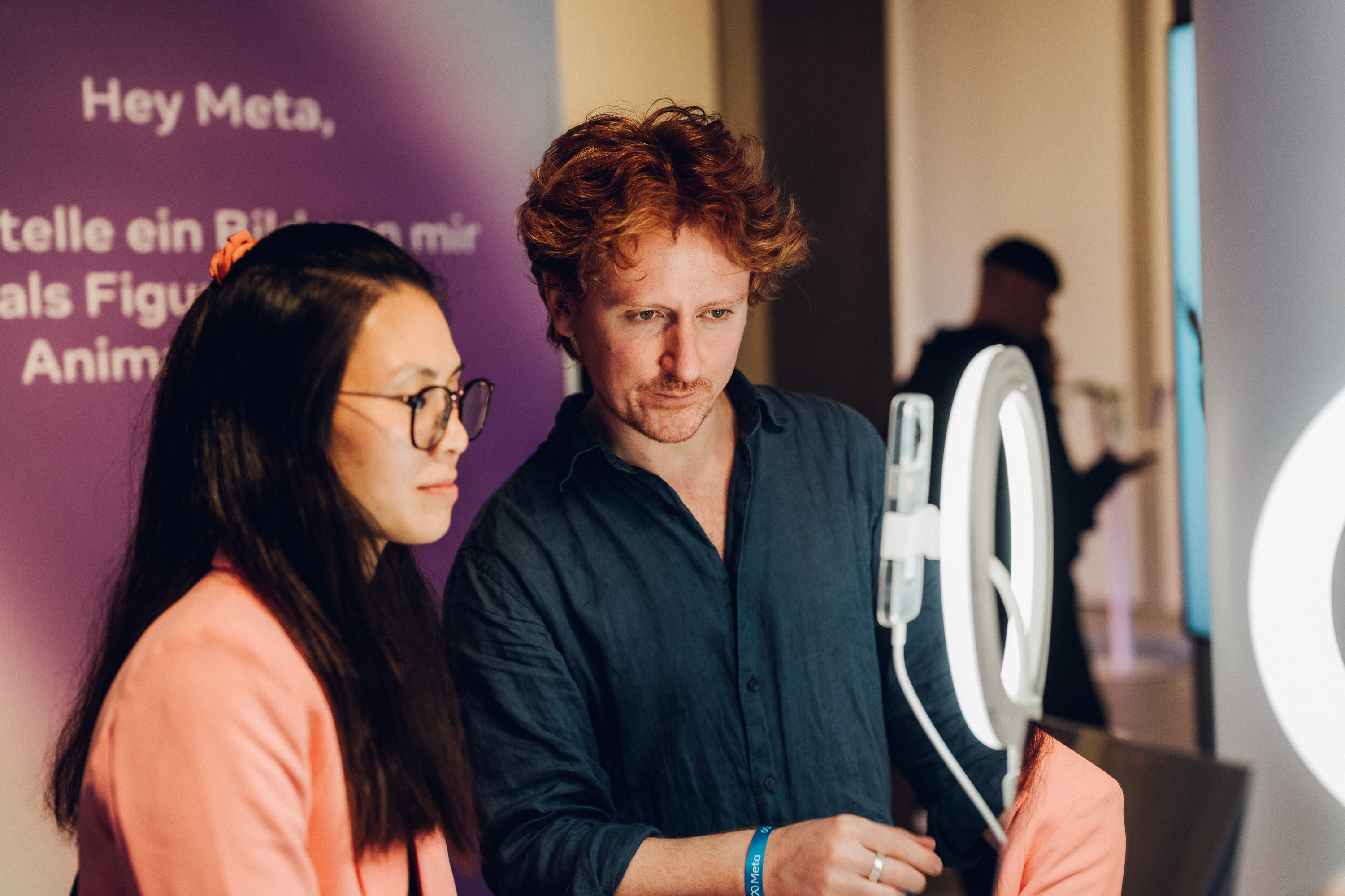 In seiner Willkommensrede erklärte Tino Krause Metas KI-Ansatz: Mit Meta AI entwickelt das Unternehmen die persönlichste KI der Welt. Ein wichtiger Punkt dabei ist Kreativität – eine einzigartige menschliche Fähigkeit, die durch KI gefördert und verstärkt werden kann. Alex Cook, Strategic Partnerships, Innovation and Gen AI Lead, und Mathilde Burnecki, Strategic Partner Manager, unterstreichen diesen Punkt in ihren kurzen Einführungsreden. Anschließend hatten die Gäste die Gelegenheit, Meta AI in verschiedenen Situationen zu testen und selbst ein Gefühl für den Umgang mit dem praktischen KI-Assistenten zu bekommen.