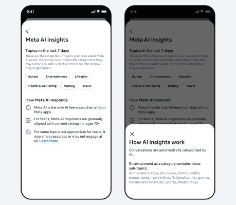 - Los padres que usan la supervisión parental ya pueden consultar los temas sobre los que sus hijos adolescentes le han preguntado a Meta AI durante los últimos siete días.