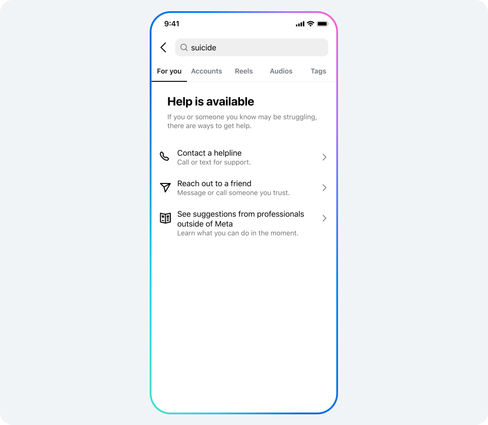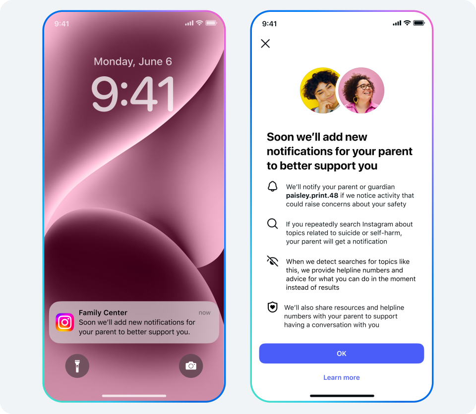 Pour atteindre cet équilibre essentiel, nous avons analysé les comportements de recherche sur Instagram et consulté des experts de notre Suicide and Self-Harm Advisory Group. Nous avons retenu un seuil qui nécessite plusieurs recherches dans un laps de temps court, tout en privilégiant la prudence. Cela signifie que nous pourrions parfois notifier des parents sans qu’il y ait de réel motif d’inquiétude, mais nous estimons, et les experts sont d’accord, qu’il s’agit du bon point de départ. Nous continuerons à suivre la situation et à écouter les retours afin de nous assurer que le dispositif reste adapté.