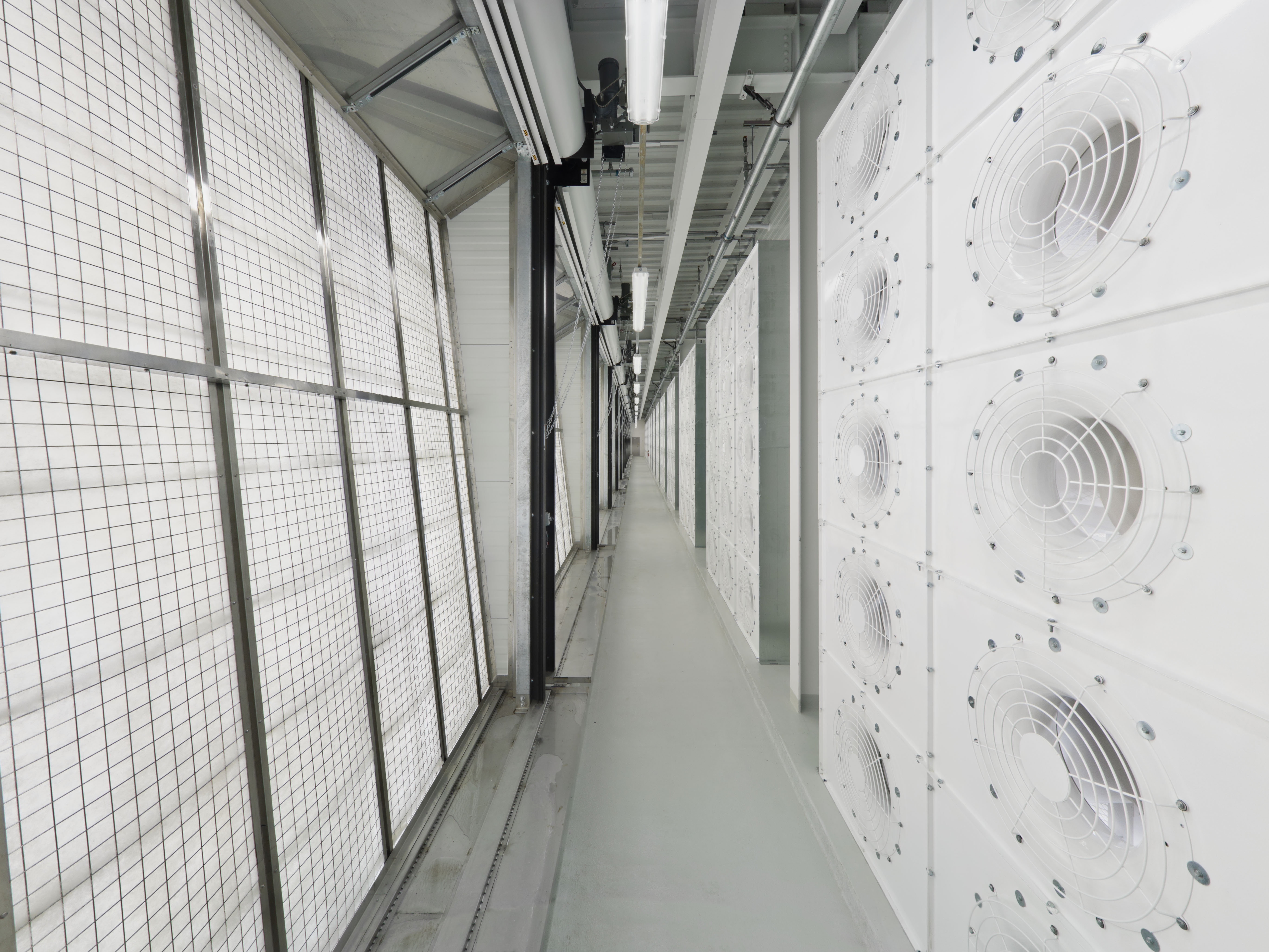 データセンター内の冷気は、一連のエアフィルターを通過し、ミスト室での微細な噴霧により、さらに温度と湿度が制御されます。