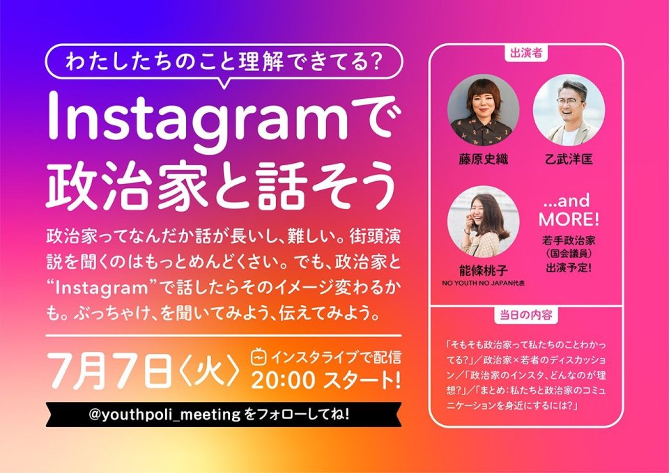 - ライブ配信アカウント: @youthpoli_meeting https://www.instagram.com/youthpoli_meeting/