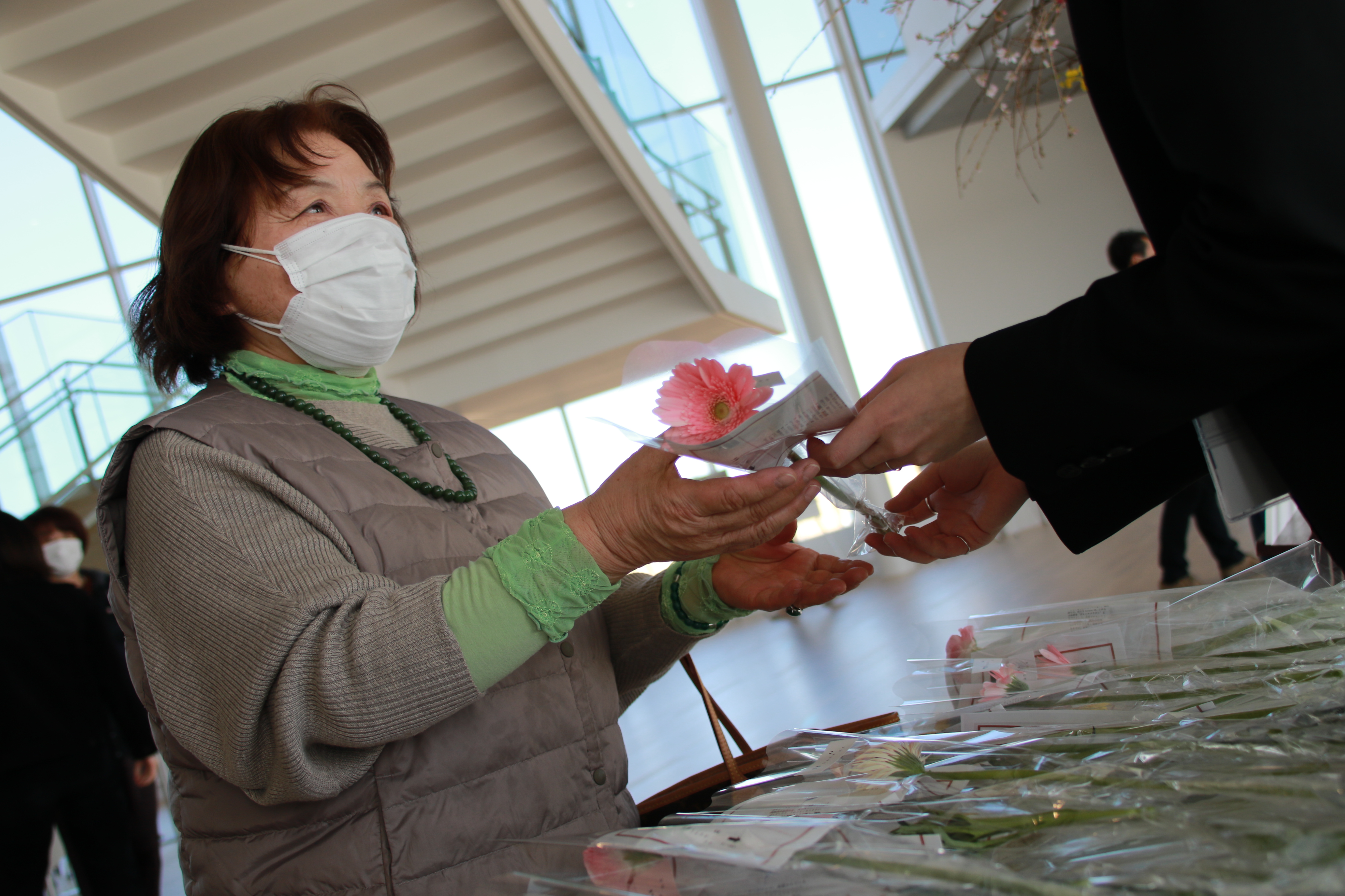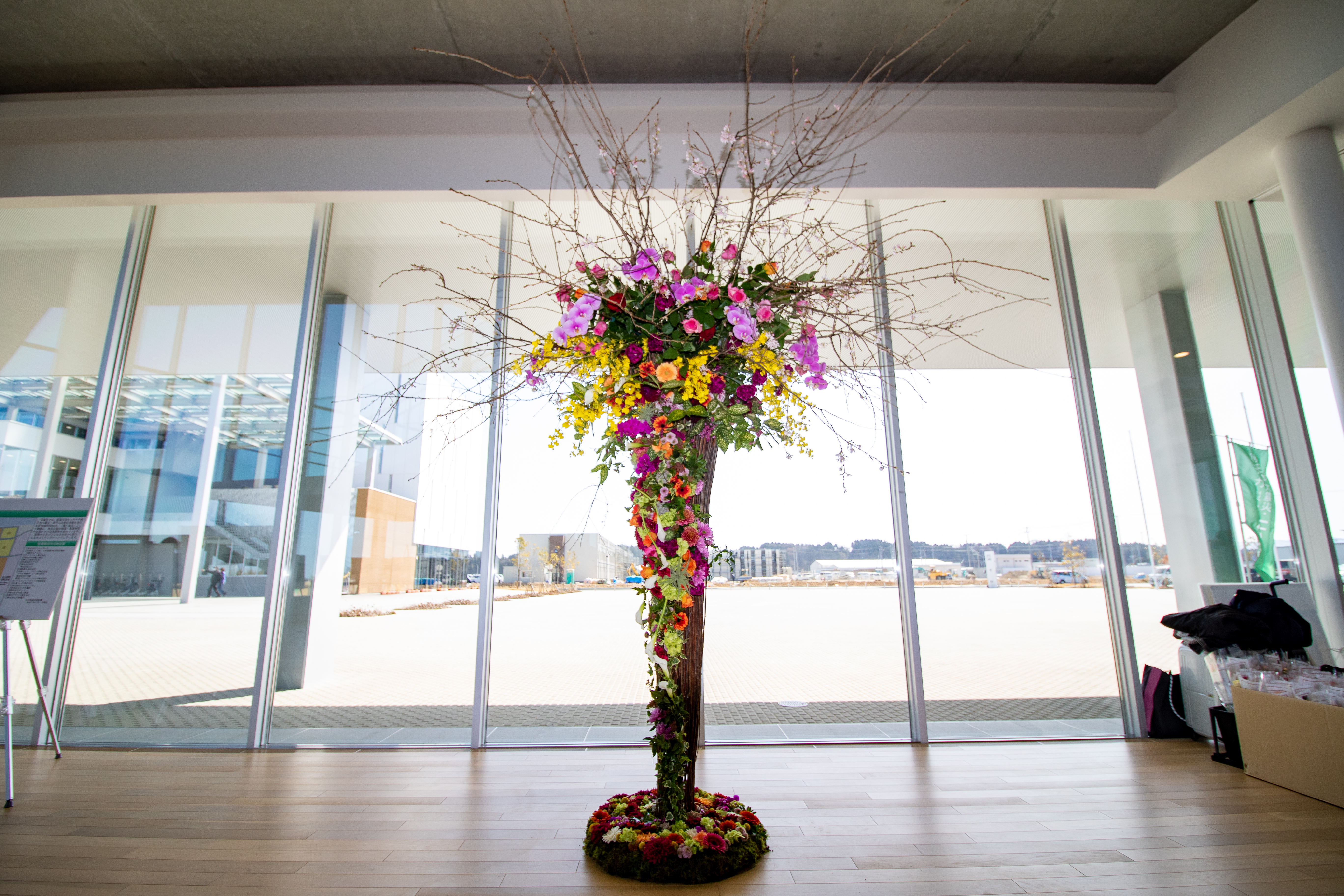 3月10日(水)・11日(木)には「東日本大震災・原子力災害伝承館」にて、hanane代表 石動力氏による1,500本のチャンスフラワーを用いたモニュメントが展示されました。また、3月11日(木)にはJヴィレッジで開催された復興支援イベント「SONG OF THE EARTH3.11」の会場に、LOVE FOR NIPPONによって制作された2,500本のチャンスフラワーをあしらったフォトフレームが設置されました。また、両会場を訪れた方へチャンスフラワーをプレゼントとしてお渡しました。