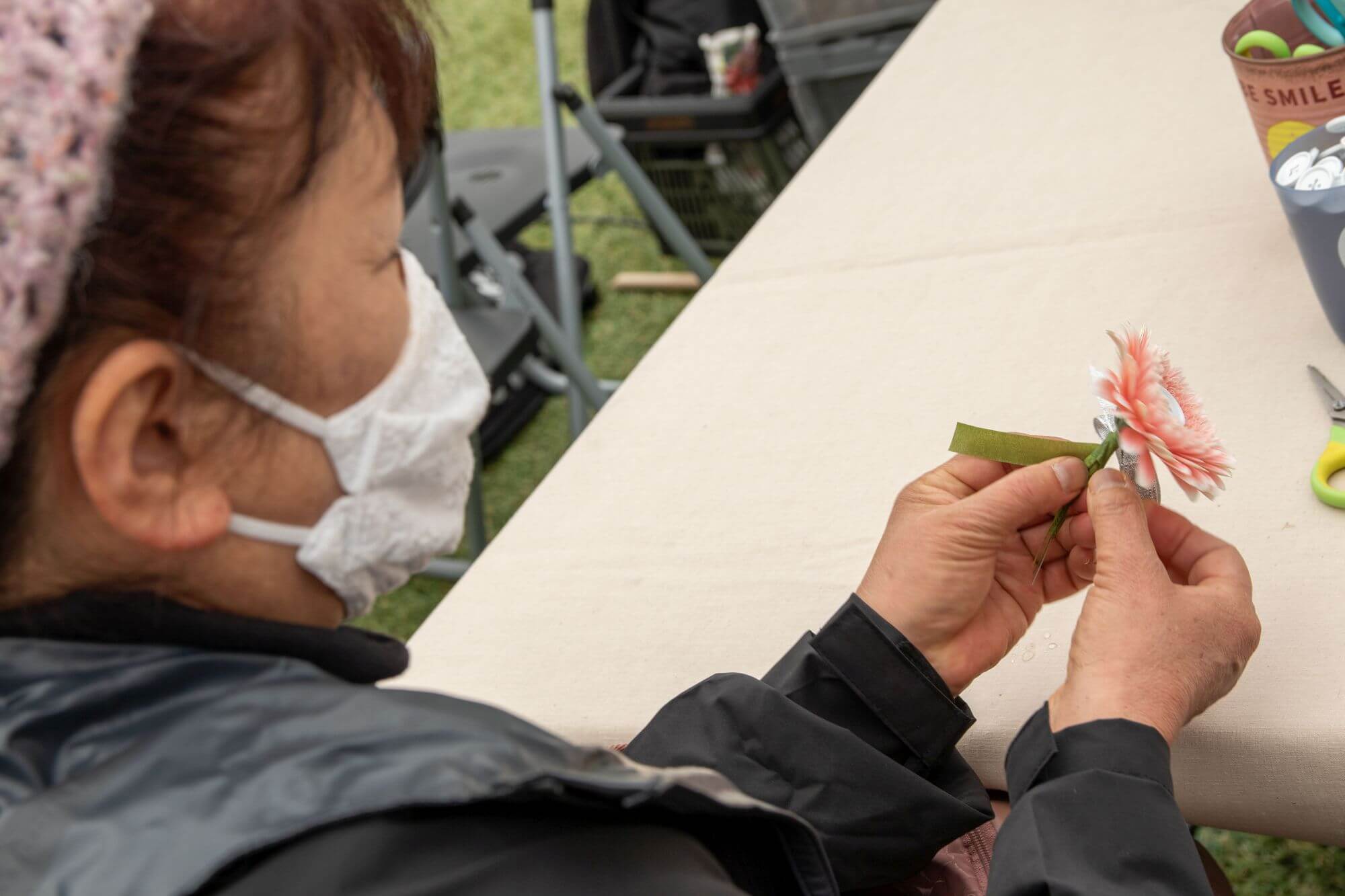 また、全国から届けられた被災地へ寄せる想いを具現化した花の一部を用いて、初の取り組みとなる、花を髪や身に着けてイベントをさらに楽しめるアイテムを制作するワークショップを実施しました。参加者からは「福島を想ってくれている人がこんなにいるのは嬉しいし、お花を見ると幸せな気分になる」「だれも一人では生きていけないから、みんなで協力して、つながりを作っていけるといい」といったコメントが寄せられました。