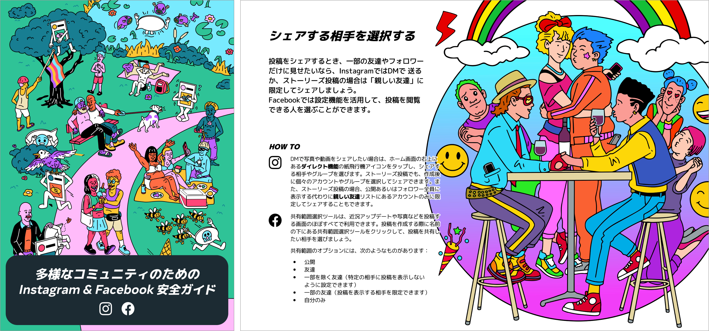 期間限定で提供する機能の他にも、LGBTQ+を含む多様なコミュニティに向けて、安心安全にInstagramやFacebookを利用するためのヒントを紹介する「多様なコミュニティのためのInstagram & Facebook 安全ガイド」(PC版 / モバイル版)を公開しています。