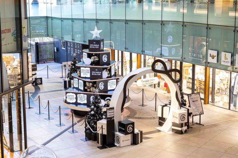 Metaは、本日12月9日(火)から12月15日(月)まで、WITH HARAJUKU B1 スペース・ストリートにて期間限定ポップアップイベント「Threads ツリー あなたの想いが灯る場所」を開催します。投稿に「スレッズツリー」のトピックをつけ、お題に合わせて今年の思い出やハマったことなどをシェアすると、明かりが灯るように自分の投稿がクリスマスツリー型のモニターに現れ、会話が広がっていく様子を目で見て楽しむことができる参加型のインスタレーションです。