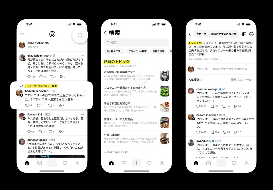 Metaは3月2日(米国時間)、Threads上で注目を集めているトピックを表示する「話題のトピック」をアップデートし、AIが生成した要約を表示する機能を日本でも導入しました。また、今後数か月以内に表示するトピックの数を現在の5つから最大10つまで増やす予定です。