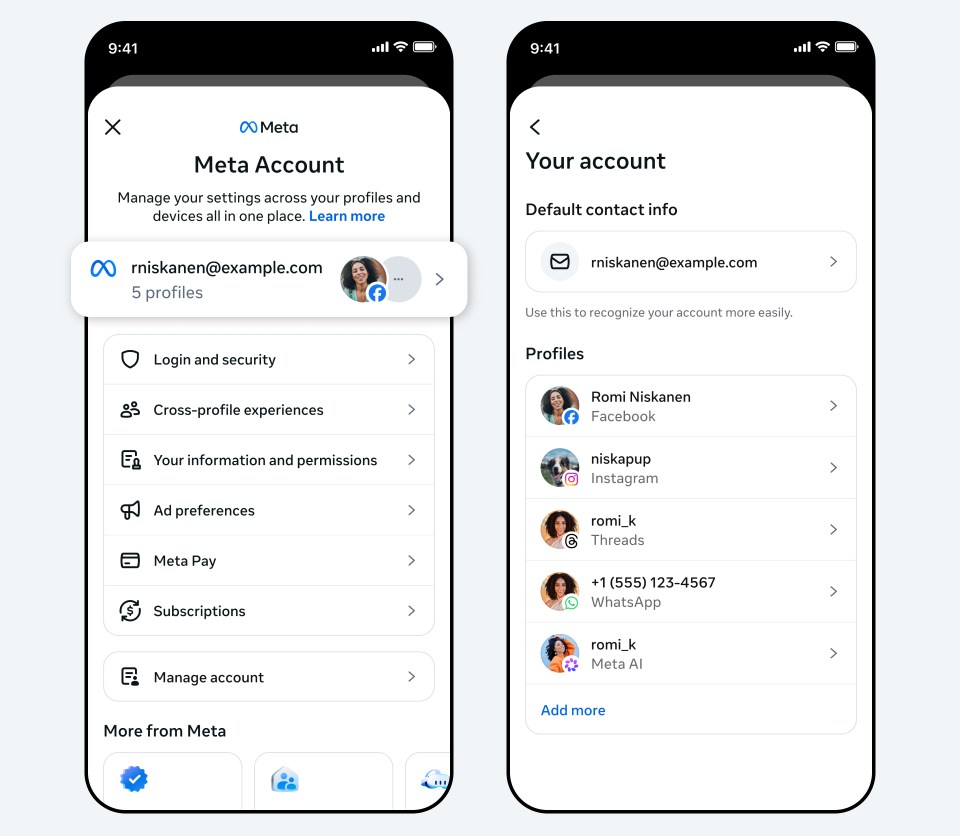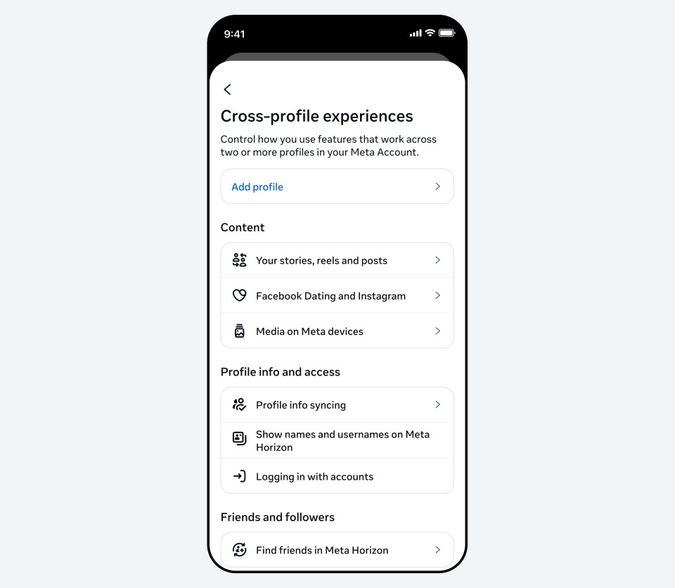 Metaアカウントは、重要な設定をより簡単に管理できるよう設計されています。