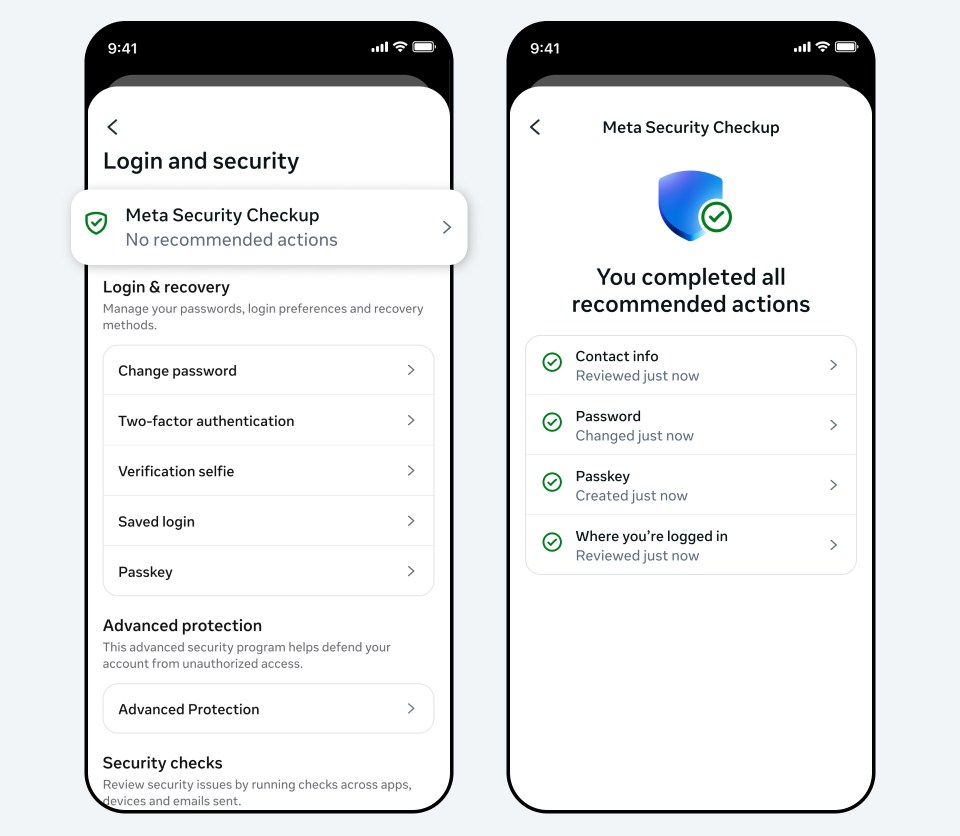 - パーソナライズされたセキュリティの推奨:「セキュリティの確認」がMetaアカウントに統合され、多要素認証やログイン通知などの保護機能を常に最新の状態に保つことができます。