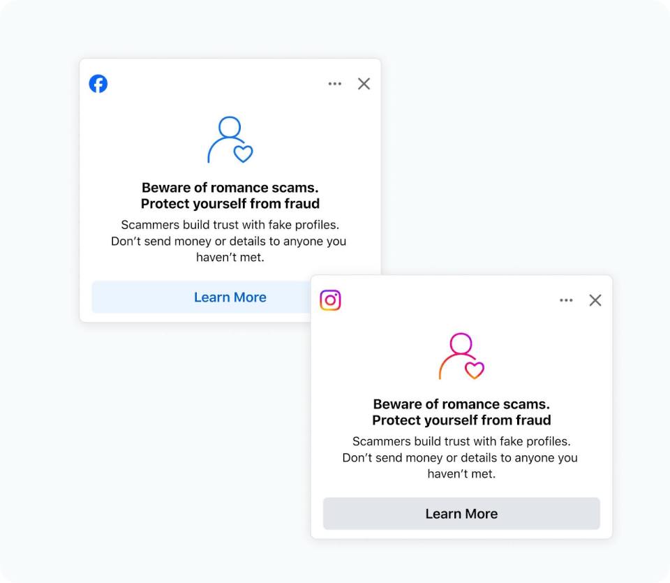 사기범들은 끈질기며 사람들을 속이기 위해 휴일이나 각종 기념일을 이용합니다. 발렌타인데이를 맞아, Meta는 글로벌 사기 예방 캠페인의 일환으로 Facebook Messenger, WhatsApp 및 Instagram에서 사용 가능한 안전 도구들을 소개하고자 합니다. 또한 이용자들을 보호하기 위해 온라인 로맨스 스캠에 대한 새로운 연구 결과와 군인 등을 사칭한 사기 행위에 대한 단속 노력을 공유하고자 합니다.