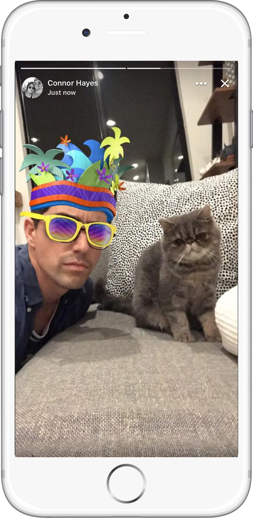 Esperamos que con la nueva cámara de Facebook, Stories, y Direct, sea más fácil que nunca ver el mundo a través de los ojos de los demás, y estamos ansiosos por ver tus fotos y videos. Mientras tanto, aquí está un foto mía con mi disfraz tropical, huyéndole al trabajo junto a mi gato Ebi.