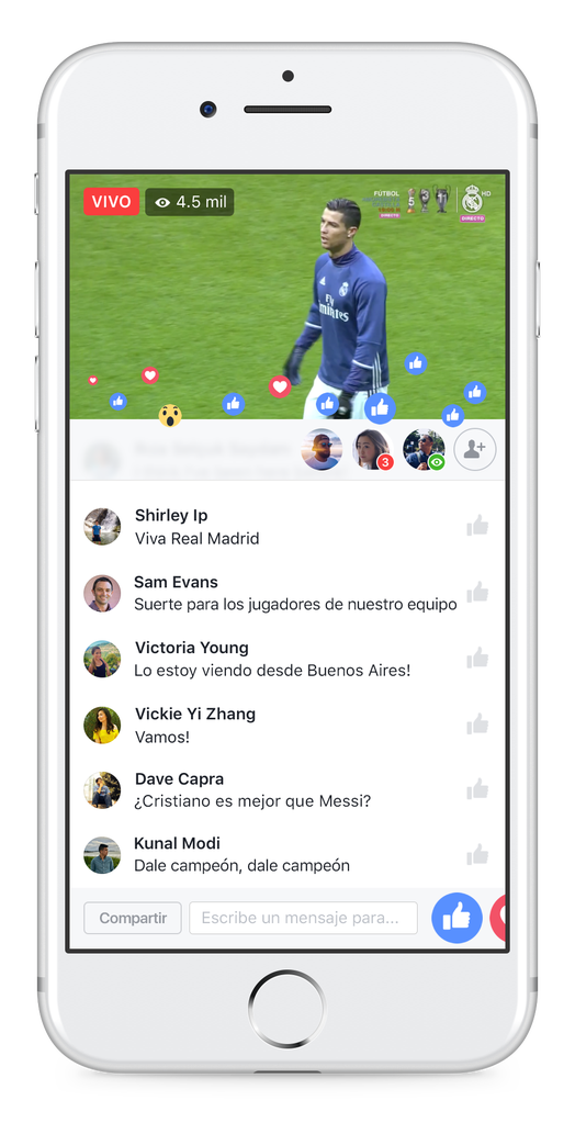 Una de las mejores cosas de Live es que puedes comentar en tiempo real sobre lo que ocurre en una transmisión. Las personas comentan diez veces más en los videos de Facebook Live que en los videos normales. Cuando se trata de transmisiones públicas llamativas –tales como noticias, una conversación con un artista o la acción tras bambalinas después de un gran partido–, verlas en comunidad y leer los comentarios es una parte emocionante de la experiencia. Sabemos que a veces las personas quieren la opción de interactuar solamente con sus amigos durante una transmisión pública en vivo, así que estamos presentando Live Chat con Amigos.