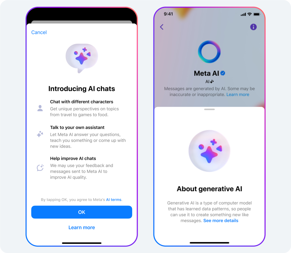 Los modelos de IA personalizados que impulsan nuevas experiencias basadas en texto, como Meta AI, nuestro asistente impulsado por modelos lingüísticos, se construyen sobre la base de Llama 2 y aprovechan sus principios fundacionales de seguridad y responsabilidad. También hemos invertido en medidas específicas para las funciones que anunciamos hoy.