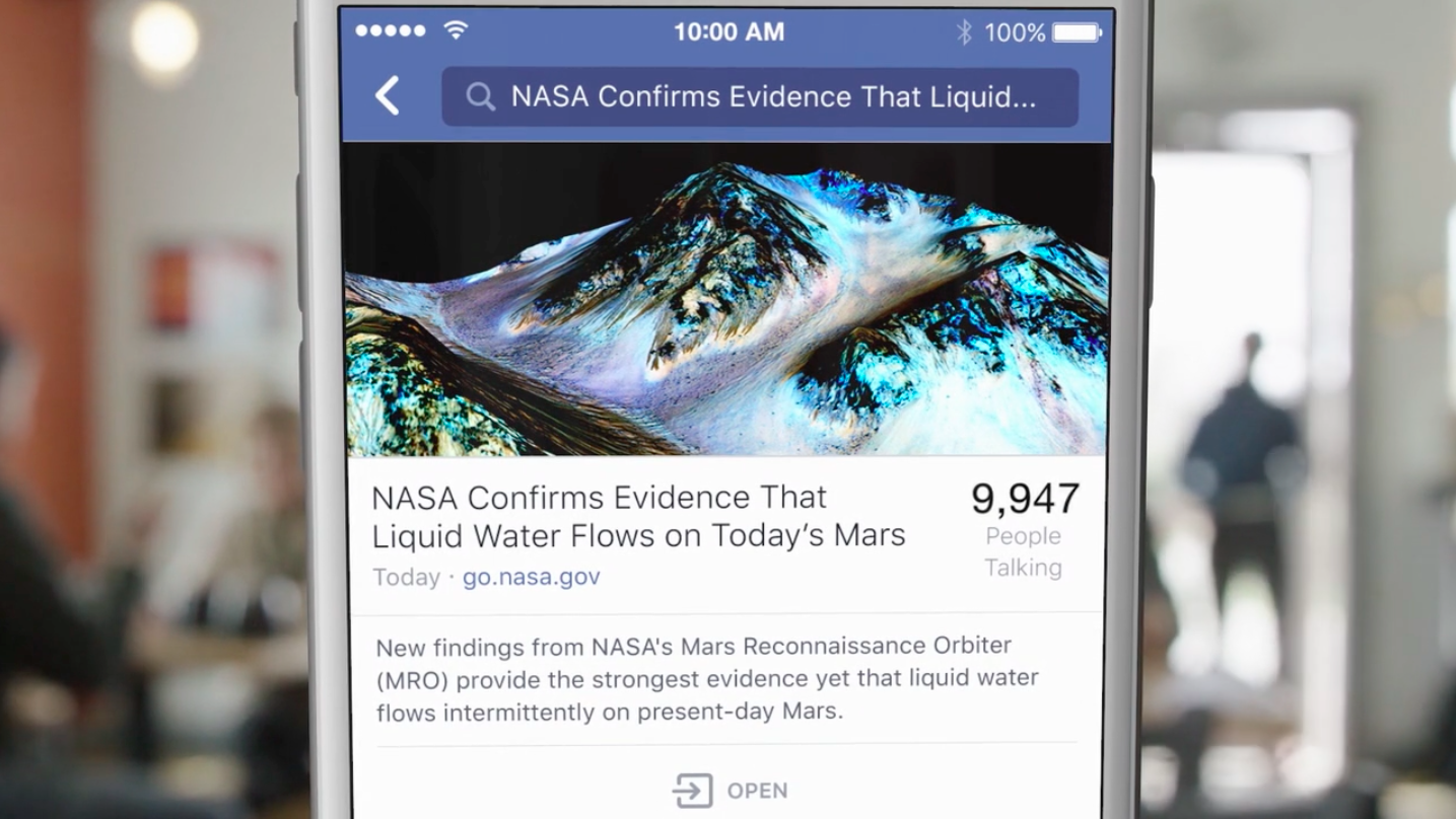 - Find public conversations with search: When a link gets shared widely on Facebook, it often anchors an interesting public conversation. Now there’s a new way to quickly dive into that discussion. With one tap, you can find public posts about a link, see popular quotes and phrases mentioned in these posts, and check out an aggregate overview of sentiment. This feature is a first step—we look forward to people using it and giving us feedback so we can make it even better.