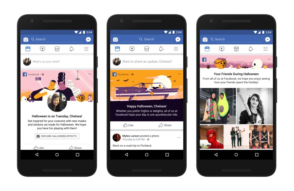 - New Effects in Camera, Live and Messenger: People can try out dozens of Halloween-themed masks, frames and stickers.