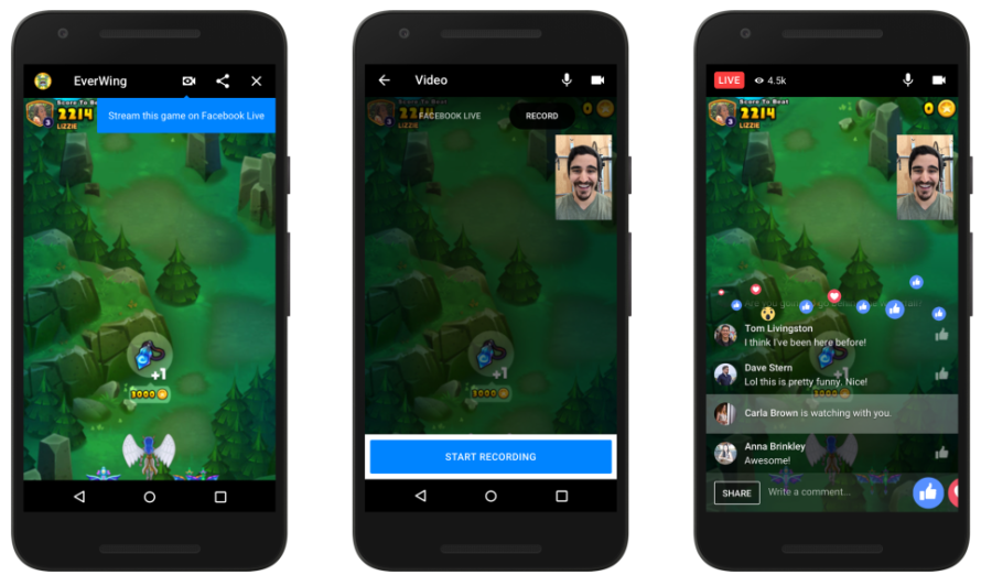 First, we’re launching live streaming, which will start to roll out today, to gamers who love to share their playthroughs and engage in a little smack talk. The new live streaming capability via Facebook Live makes it simple for people to play and share their experiences with those who love games on Messenger. It’s easy to get started: while playing a game, tap the camera icon located in the upper right corner of the game. Once selected, you can choose the audience you want to broadcast to and add a short description to say something about your video. To start recording, just press the “Start Live Video” button. Once the broadcast ends the video will be published to your Page or profile so that fans and friends who missed it can watch at a later time. You can remove the video post at any time, just like any other post.