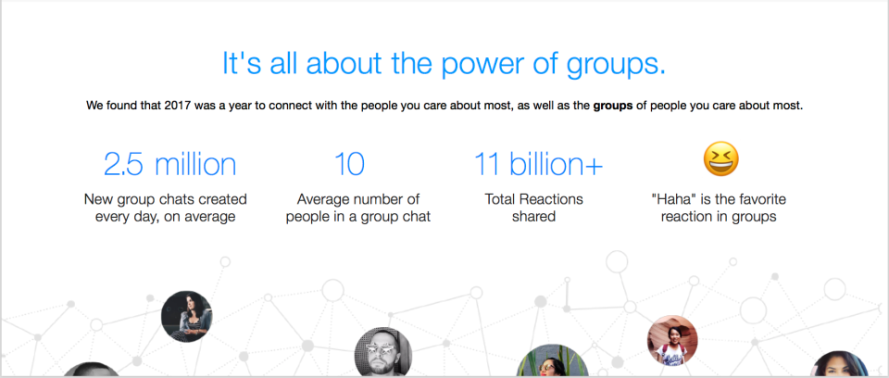 - In 2017, 2.5 million new groups were created on Messenger EVERY day