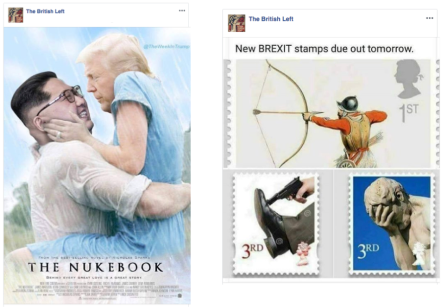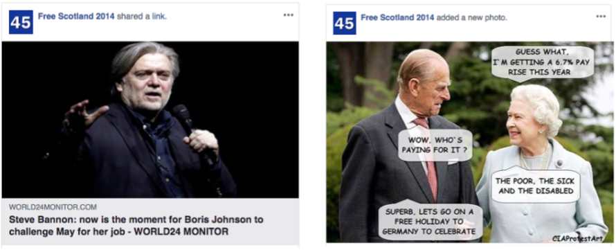 Based on FireEye’s tip, we started an investigation into “Liberty Front Press” and identified additional accounts and Pages from their network. We are able to link this network to Iranian state media through publicly available website registration information, as well as the use of related IP addresses and Facebook Pages sharing the same admins. For example, one part of the network, “Quest 4 Truth,” claims to be an independent Iranian media organization, but is in fact linked to Press TV, an English-language news network affiliated with Iranian state media. The first “Liberty Front Press” accounts we’ve found were created in 2013. Some of them attempted to conceal their location, and they primarily posted political content focused on the Middle East, as well as the UK, US, and Latin America. Beginning in 2017, they increased their focus on the UK and US. Accounts and Pages linked to “Liberty Front Press” typically posed as news and civil society organizations sharing information in multiple countries without revealing their true identity.