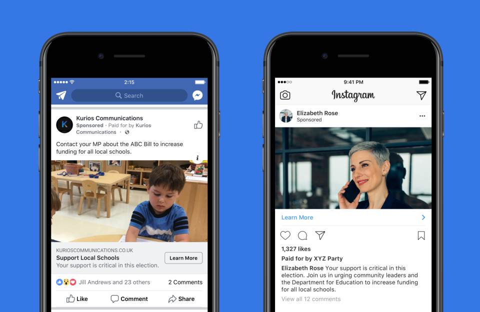Different countries maintain their own standards and laws to ensure that people know who pays for the political advertising they see. People rightly expect that these standards will be reflected online, and we’ve been testing a range of ways of not only meeting those requirements in online political advertising, but going one step further by telling you who paid for an advert and housing all these ads for up to seven years in an Ad Library. This helps people have the information they need to assess ads that relate to politics.