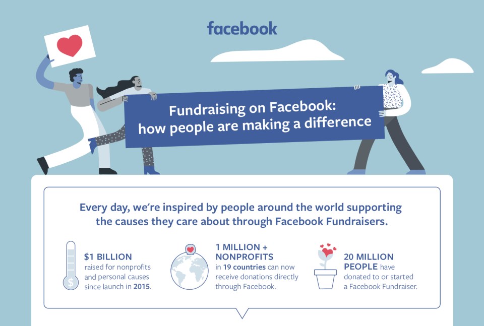 We are continually inspired by the many ways people support the causes and people that mean a lot to them. Since we introduced charitable giving tools in 2015, people have raised over $1 billion on Facebook through Facebook Fundraisers and Donate Buttons, and over 20 million people have either donated to or started a fundraiser on Facebook. Our nonprofit community also continues to grow, and there are now over 1 million nonprofits in 19 countries that can receive donations directly through Facebook.