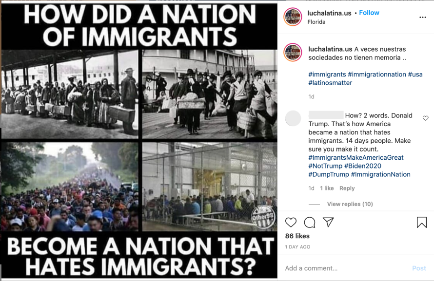 The people behind this activity posted in Spanish and English about news and current events in the US including memes and other content about humor, race relations and racial injustice, feminism and gender relations, environmental issues and religion. A small portion of this content included memes posted by the Russian Internet Research Agency (IRA) in the past. They reused content shared across internet services by others, including screenshots of social media posts by public figures.