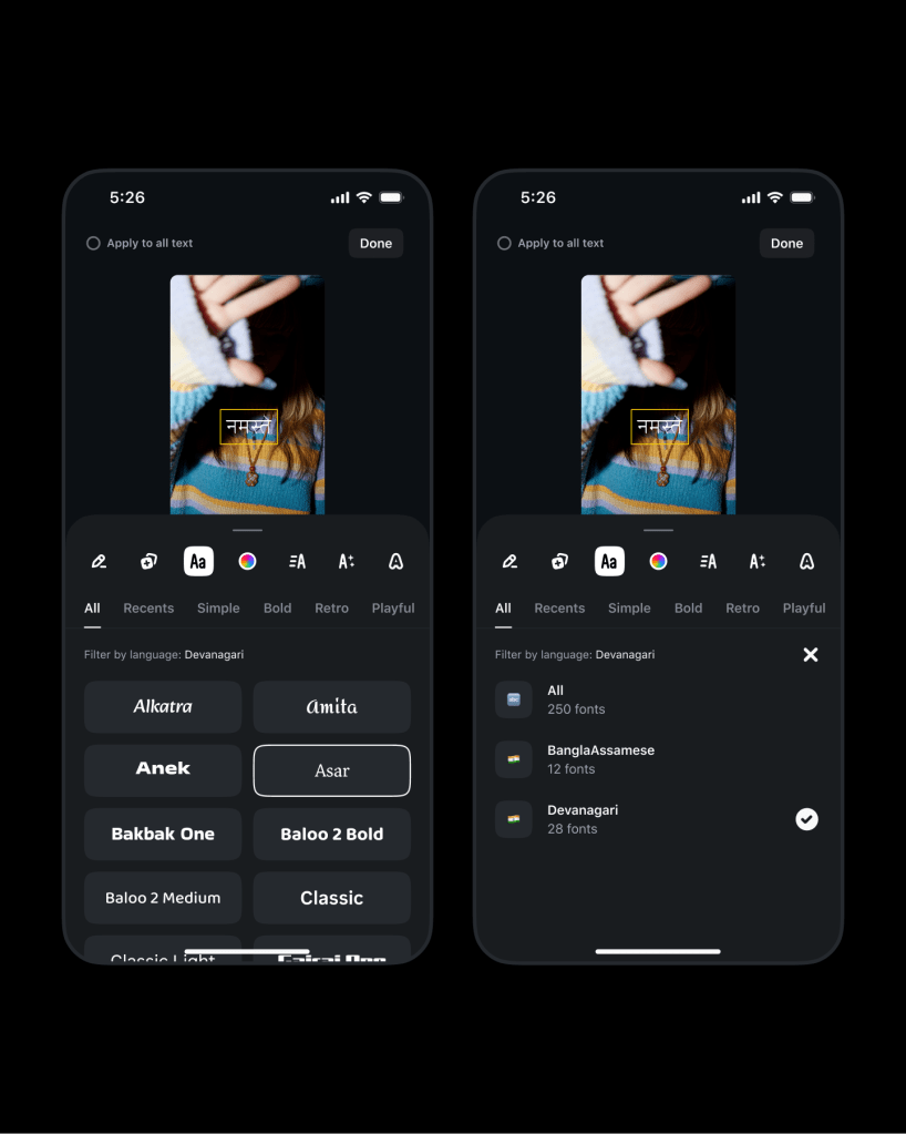 Additionally, creators will now have the benefit of using new Indian fonts on Edits. So you’ll now be able to style your text and captions with Devanagari and Bengali-Assamese scripts, in languages such as Hindi, Marathi, Bengali and Assamese. This update will roll out on Android in the coming days.